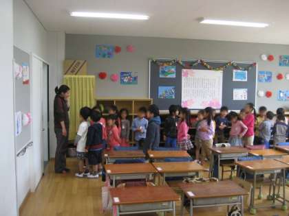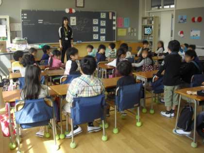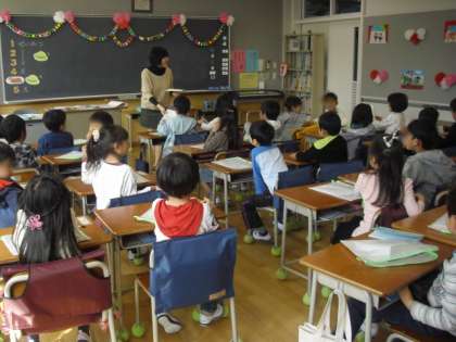 1年生のお友達は、みんな一生懸命担任の先生の話を聞き、学習を進めていました。配られたプリントを上手に折って連絡袋にしまうこともできました。廊下も静かに歩くことができました。一つ一つが学校生活では大切な基本となります。