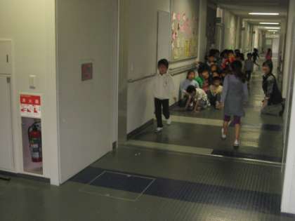 廊下歩行は、一人ずつ、右側を歩くことをしっかりと意識しながら練習しました。