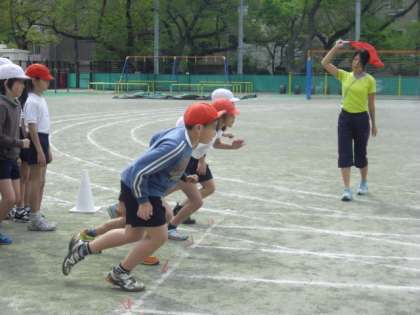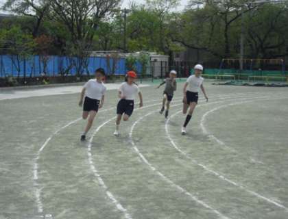 運動会の短距離走は、5年生が「80m⇒100m」に、3年生は「50m⇒80m」になり、それぞれ距離が延びます。3年生はカーブを走る技術も必要になります。