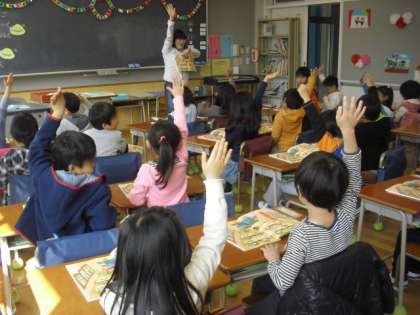 1〜3番の最後の♪ひがし ふかさわ よい がっこう♪を、みんなはすぐに覚えてしまいました。行方先生もびっくりでした。