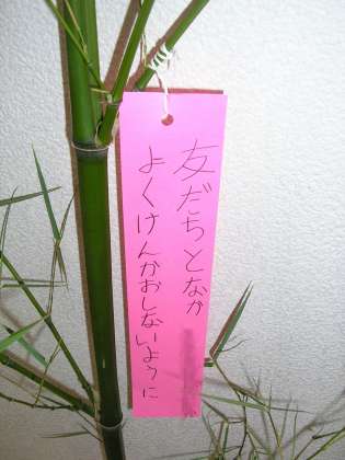 3年生のクラスでもお家から笹を持ってきてくれ、短冊に願いをこめたクラスもあります。素敵な願いがありました。「友だちと なかよく けんかを しないように」