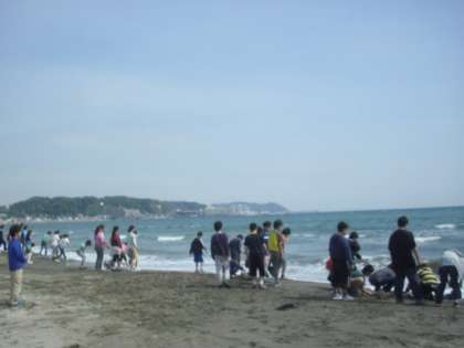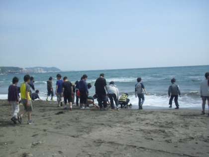遠足の最後は、由比ヶ浜海岸です。気持ち良い潮風を浴びました。