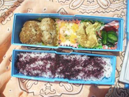 恒例のお弁当紹介。朝早くからお弁当づくりありがとうございました。