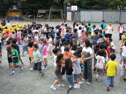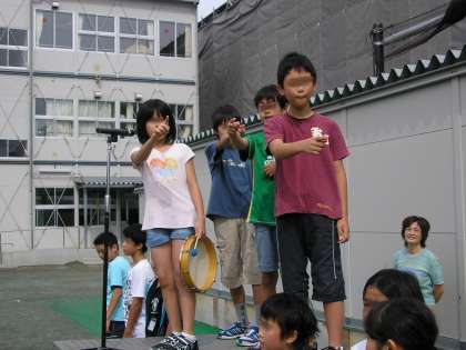 今朝は集会委員会の集会で「猛獣狩りに行こうよ」を行いました。体育館が改修中で使用できないので、準備をした集会委員会の友達も雨が落ちてこないことを願っていました。今日は、集会委員会の友達の願いが通じた空でした。
