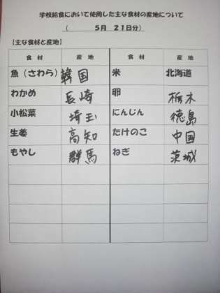 5/21 今日の給食