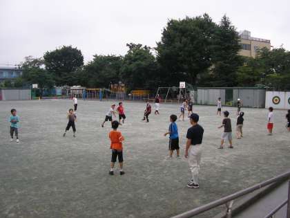 初心者向けの野球教室です。少年野球「ジャガーズ」のメンバーも手伝ってくれました。ありがとう。キャッチボールやバッティングを楽しくしました。担当は、古矢先生・山本先生・小暮先生・寺山先生・鍛田先生です。