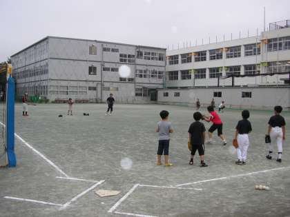 基礎に続いて野球の中級クラスです。先生のノックも少し厳しく。小雨もなんのその子どもたちは元気に白球を追いかけました。担当は、古矢先生・山本先生・角田先生・鍛田先生です。