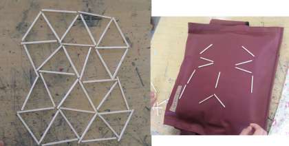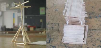 さらに、ボンドを使っていろいろな立体的な形を作ったり、壊したりしながら、最後には個性的なマッチ棒の形が生み出されました。