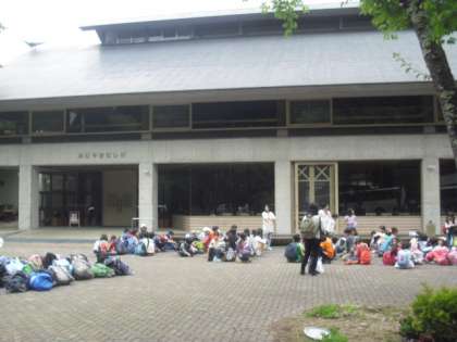 予定通り川場の宿舎ふじやまビレジに到着。薄日もさしてきました。開校式もスムーズに行われました。