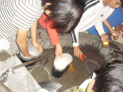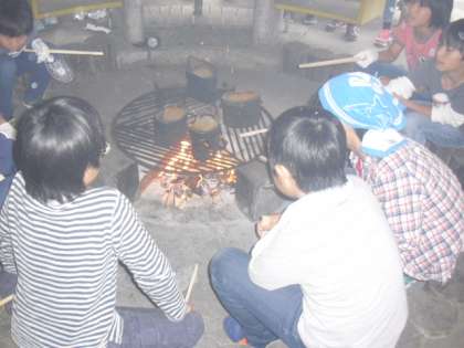 夕食は自分たちで作ります。火おこしをしたり、お米をといだり、カレーを作ったりと大忙し。みんな仲良く協力して作業をしています。