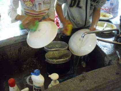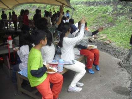 みんなで作ったカレーライスはおいしかったです。「友情の味」と言って食べているグループもありました。ごちそうさまでした。片付けも大切なお仕事です。