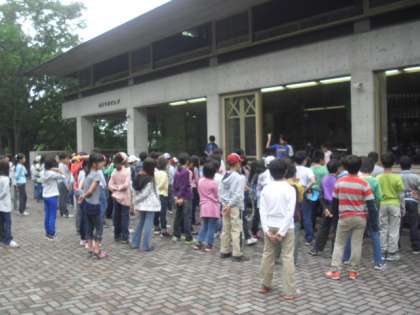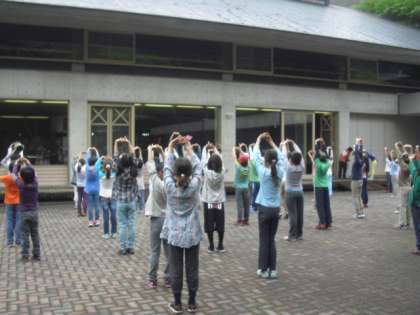 6時20分、全員元気に朝会に参加。ビレッジ内でニイニイゼミ(だと思います。)を発見。セミを蜂と間違える子もいました。7時からは朝食です。