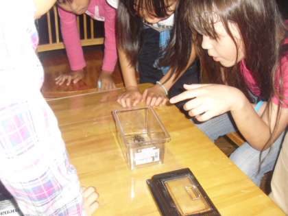 子どものころからあこがれのクワガタにちょっと興奮して、子どもたちに紹介しました。この後、山に帰します。