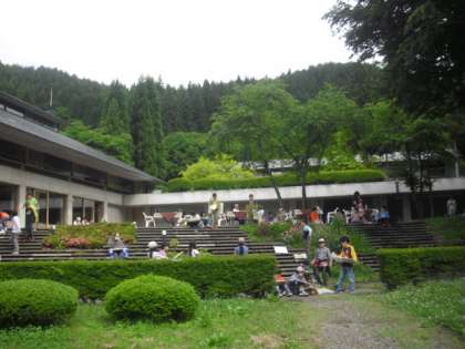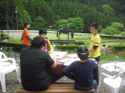 紙すき体験を待っている間や終了したお友達は、ビレジ前で写生をして楽しみます。