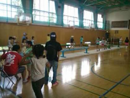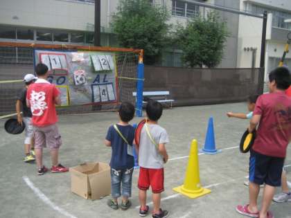 校庭や体育館にいろいろなゲームやスポーツのコーナーが作られて、