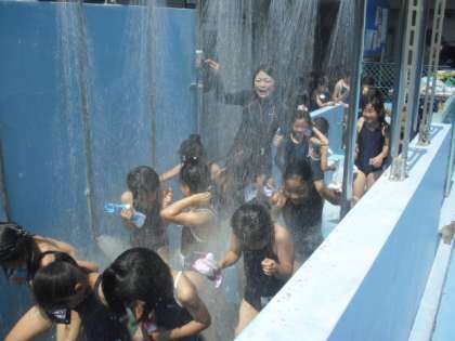 今年度のトップを切って2年生がプール開きをしました。プールサイドの気温31度、水温27度と絶好のプール日和です。1年ぶりのシャワーに、大きな歓声があがりました。今年も安全で楽しく水泳ができるようにしていきます。