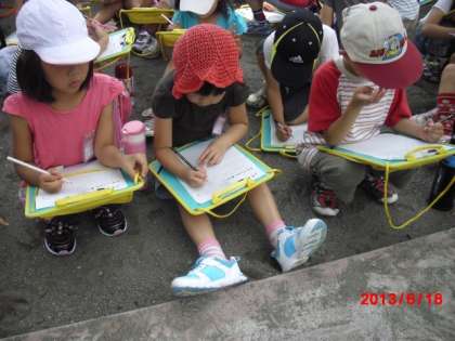 子どもたちは、見つけたものを、一生懸命カードに記入していました。(2年担任 西村)