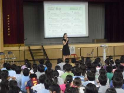 6校時は、NTTの2名の方を先生として、4〜6年生が携帯電話の使い方のマナーやしてはいけないことを学習しました。
