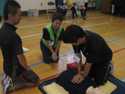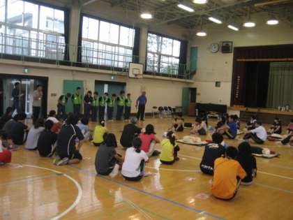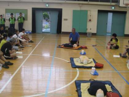 みしまの森学舎として、等々力小学校体育館で「救命救急講習」が