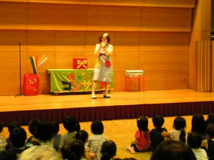 青少年深沢地区委員会の主催で、子どもシアターが深沢区民会館ホールで行われました。1,2年後の小学生に混じって、ひがしの1,2年生も参加していました。今日は「ゆかいなコンサート」という、音楽バラエティーショーでした。
