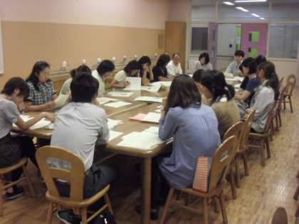 先生方全員が熱心に話し合いました。子どもたちのために、みしまの森学舎として9年間の指導を見通して、授業を工夫していきます。