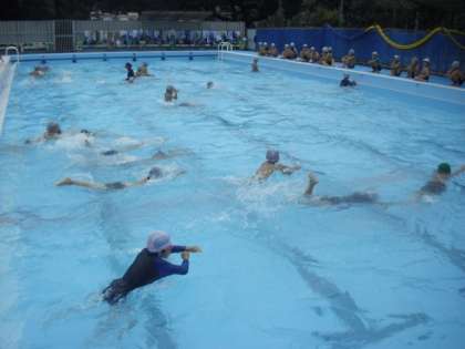 子どもたちは、泳いでいるお友達を大きな声で応援していました。とてもすてきなことです。