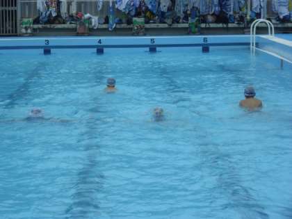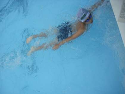 3年生が、今年初めての検定を行いました。3年生の目標は「6級:10m以上泳げる(赤線3本)」です。