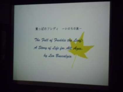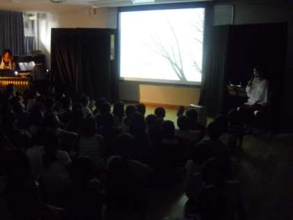 子どもたちは、おばけりんごではおはなしから、葉っぱのフレディではおはなしと美しい映像から、場面を想像しながら聴いていました。BGMもとてもすてきでした。