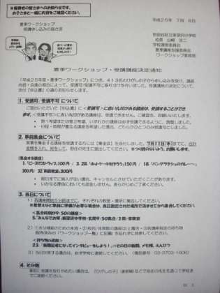 7/9 夏季ワークショップ・受講講座決定通知