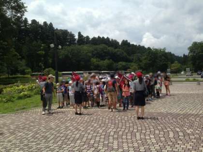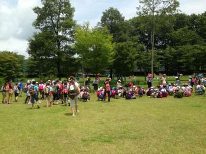 大谷川公園につきました。晴れています。ここでお昼ご飯のお弁当を食べます。