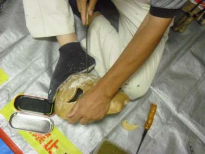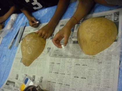 夜の活動は、ふくべ細工です。