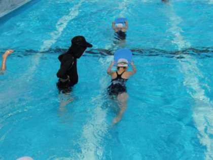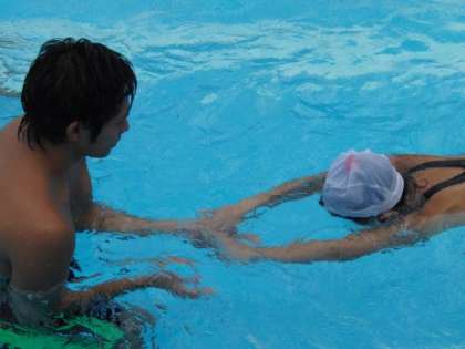 夏季水泳教室のはじめに、プールに顔をつけられなかった1年生も今日はバタ足で3m以上泳げるようになりました。子どもたちの成長・進歩が私たちの喜びです。明日の水泳教室もたくさんの子どもたちに参加してほしいです。