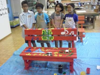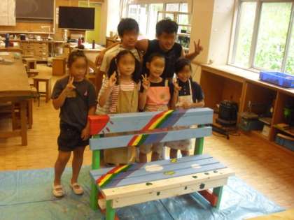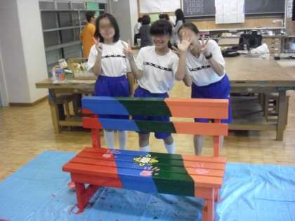 2日間にわたり、ご指導いただいた渡辺さんをはじめ五章建設の皆さん、みしまの森学舎各校の学校運営委員の皆さん、保護者の皆さん、東深沢中学校の先生方、中学生ボランティアの皆さんのおかげで、子どもたちの思いが詰まったすてきなベンチができ上がりました。ありがとうございました。感謝いたします。
