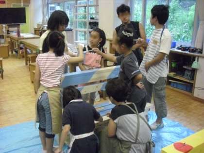 完成に向けて、グループごとに丁寧に色を塗っていきました。