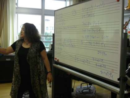 30日に引き続き、「Oh Happy day」を歌いました。みんなでリズムに合わせて体を揺らし、大きな声で歌う姿が印象的でした。歌いきった後は、音楽室にみんなの声が響き渡り、最高にいい気持ちになりました。特別ゲストに、地域の方が来てくださり、本場の発音で歌って聞かせてくださいました。みんなで心を一つに歌うことの楽しさや、気持ちよさをたくさん感じることができたように思います。