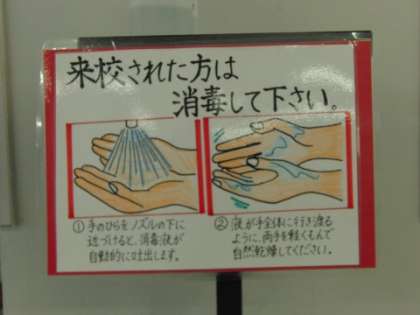 ご来校のときは、手の消毒をお願いいたします。