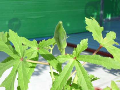 オクラは、写真のように、空に向かって実を付けます。知っていましたか?