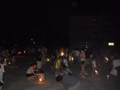 午後7時より遊び場開放運営委員会主催の「花火大会」を校庭で行いました。