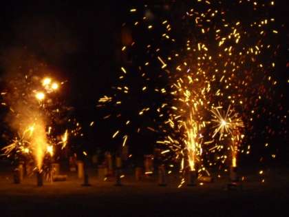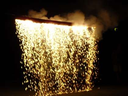 7時から30分間は、参加者が個々に手持ち花火で楽しみ、7時30分からは、打ち上げ花火です。家庭ではなかなかできない打ち上げ花火も校庭ならOKです。