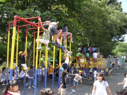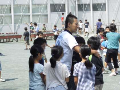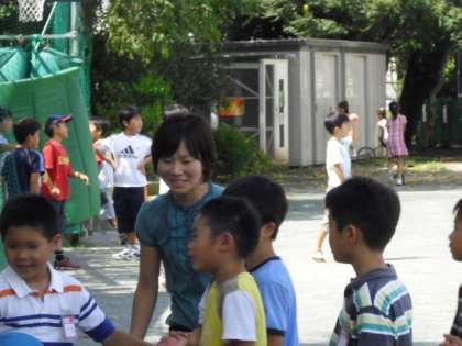 校庭に子どもたちの元気な姿が戻ってきました。先生方も一緒に遊んでいます。