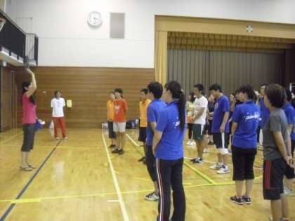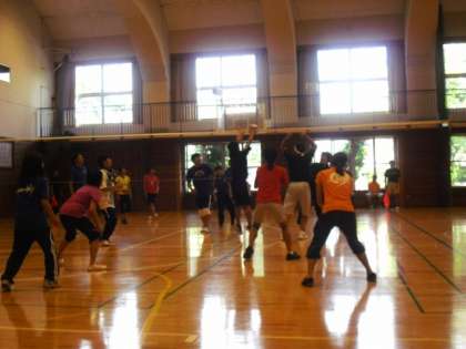 そして後半は、小学校の体育で行うソフトバレーボールと、中学校の体育で行うバレーボールの実技研修会を行いました。