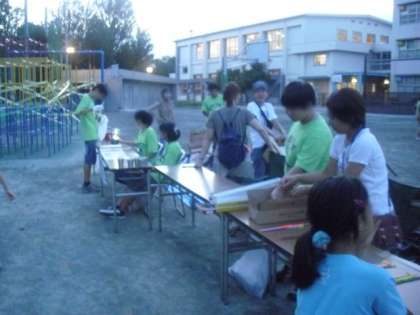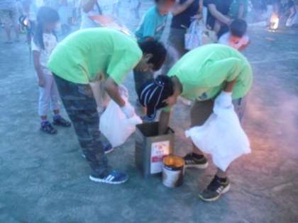 皆さんが、花火を楽しんでいる間も、東深沢中学校ボランティアの13人の先輩方は、受付をしたり、花火の燃えかすの片づけをしたりしていました。16:00ころに集合し、片付けが終わるまでがんばっていました。その姿は、小学校の後輩たちのお手本です。いつもありがとう。