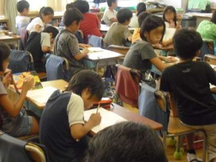 4年生は、夏休みの間に、読書カードを書いたり、昔の道具調べをしたりしました。