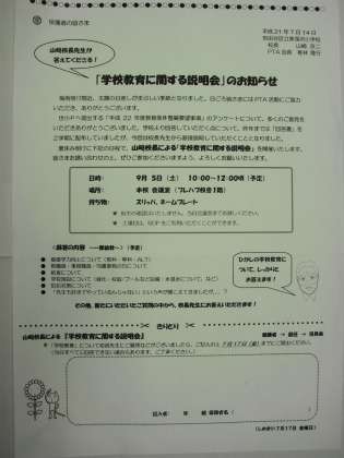 7月14日付のプリントで「学校教育に関する説明会」を