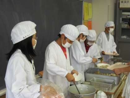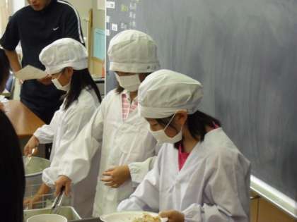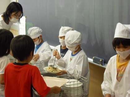 給食当番は、1年生から6年生まで、手洗いをきちんとして、マスクをつけて配膳します。給食当番になったらマスクを持ってきてください。ご協力よろしくお願いいたします。
