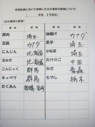 9/19 今日の給食