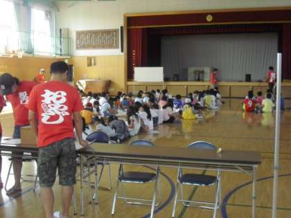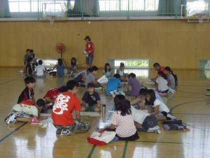 プレキャンプは、オリエンテーションの会で、2日間の予定や持ち物、イベント、約束事などを聞きました。そして班に分かれ自己紹介をしたり、班長などの分担を決めたりしました。