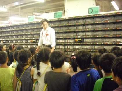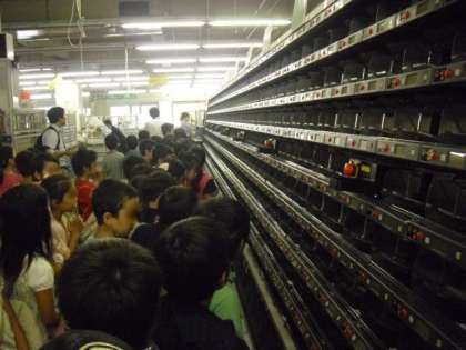 郵便局の中には大きな機械がありました。その機械が動きだすと、「すごい!」「速い!」という声が上がり、あっという間に手紙の仕分けが終わりました。1時間に3万枚も仕分けられると聞き、子どもたちはびっくりした様子でした。