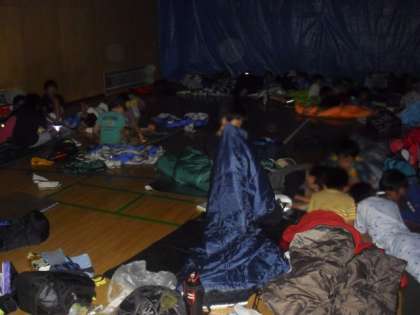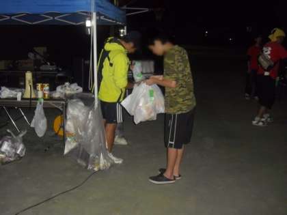 夕食の後は、恒例の肝試し。みんなが楽しめる?ようにと、高校生と中学生ボランティアがお化け役になって暗いランチルームで大活躍でした。また、校庭では、ゴミを拾ったり、椅子を片付けたりしていました。長い時間、どうもありがとう。