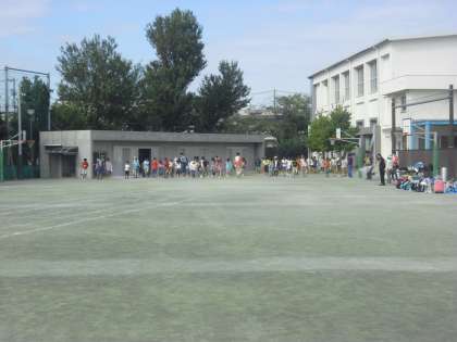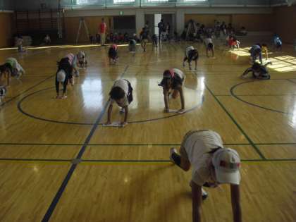 体育館の床や階段の雑巾がけをし、校庭のゴミ拾いをしました。